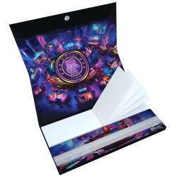 Mergulhe no ambiente vibrante de Las Vegas com o Papel para enrolar Snail Las Vegas. Este pacote exclusivo contém 20 livretos King Size, cada um com designs alusivos à emocionante cidade do jogo. Cada livrinho oferece 32 folhas ultrafinas e 32 filtros, projetados para uma experiência de enrolamento única. A capa do Papel para enrolar Snail Las Vegas não apenas garante a segurança dos seus papéis e filtros com o seu fecho magnético, mas também possui uma característica única: pode ser dobrada para se tornar uma tigela prática para a mistura. Prepare as suas ervas simplesmente abrindo completamente a capa e dobrando nas marcas. Depois de terminado, feche-a novamente para guardar tudo de forma segura. Com dimensões de 110 × 53 mm, terá espaço suficiente para criar cigarros personalizados. Além disso, o design da embalagem reflete a essência de Las Vegas e a sua energia incomparável. Com 4 designs diferentes em cada caixa, irá desfrutar de uma variedade de imagens temáticas de Las Vegas. Aventure-se a explorar o lado emocionante com o Papel para enrolar Snail Las Vegas. Encontre a sua sorte a cada baforada!