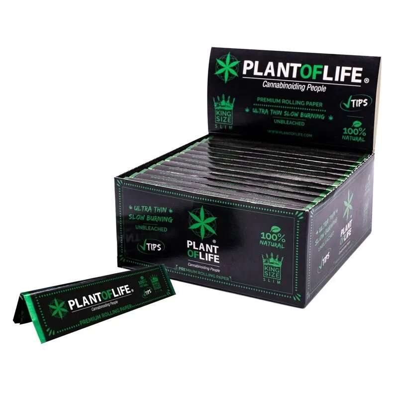 Caixa de papel de enrolar não branqueada da marca Plant of life. 50 livretos de 32 folhas e filtros de papelão.