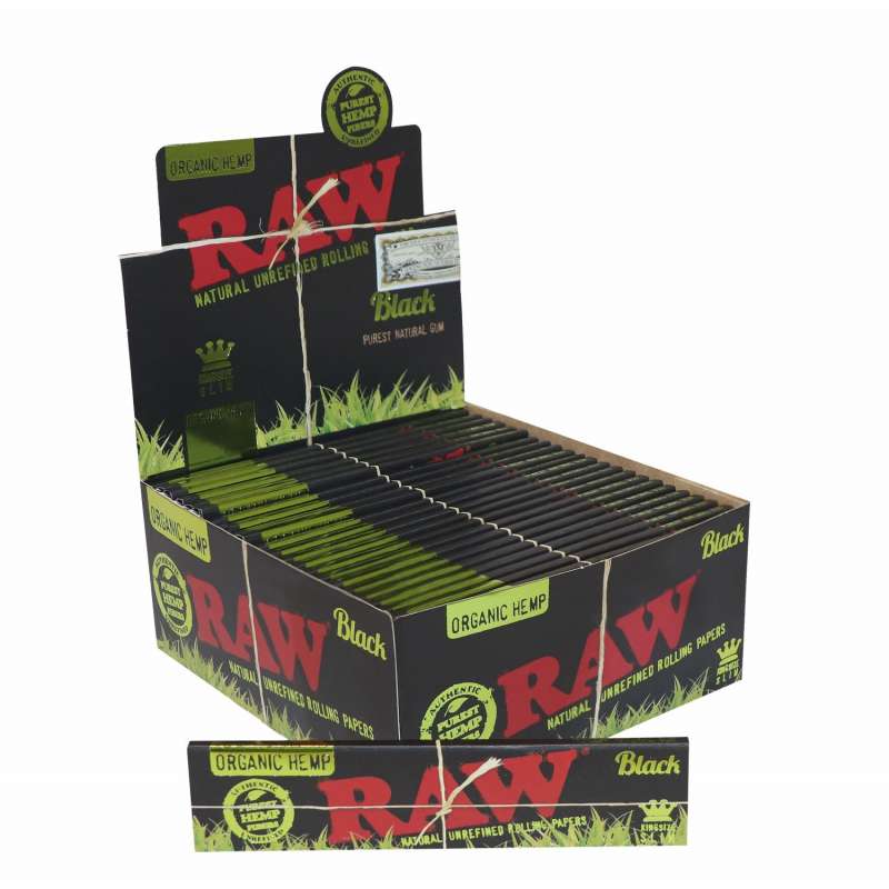 O Raw Black Organic King Size Slim é um papel ultrafino desenhado para uma combustão mais lenta. Com medidas de 110x44mm, cada caixa contém 50 livretos de 32 folhas cada um, fabricados unicamente com materiais naturais e 100% veganos.