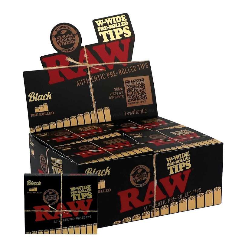 Raw Black W Shape Wide Tips Prerolled | Caixa de 20