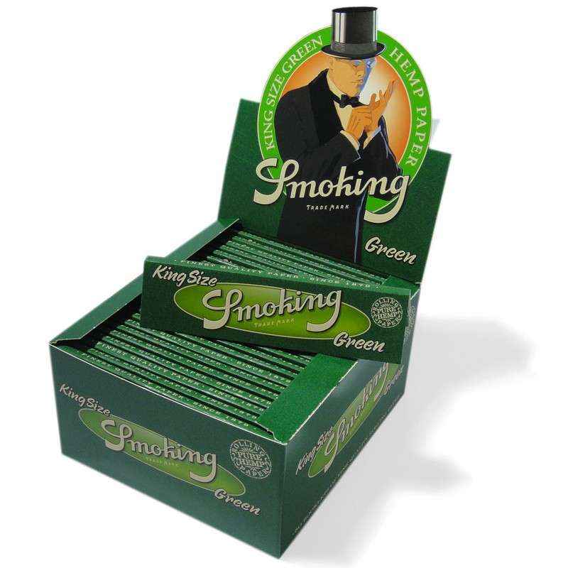 Descubra a caixa de papel de enrolar Smoking Green King Size da reconhecida marca Smoking. Este papel foi elaborado com cânhamo ecológico. Livre de pesticidas, herbicidas ou fertilizantes artificiais. Possui o selo Tree Free que garante que nenhum árvore foi cortada para elaborá-lo. É feito com pasta de cânhamo. Esta caixa contém 50 livretos, cada um com 33 folhas de 52mm de largura. Fabricados com papel da mais alta qualidade, projetados para uma combustão lenta e uniforme, com goma vegetal e sem corantes nem aditivos, estes papéis permitem desfrutar ao máximo do sabor e aroma da sua erva favorita. Adicione já à sua loja, tabacaria, associação ou catálogo de distribuição.