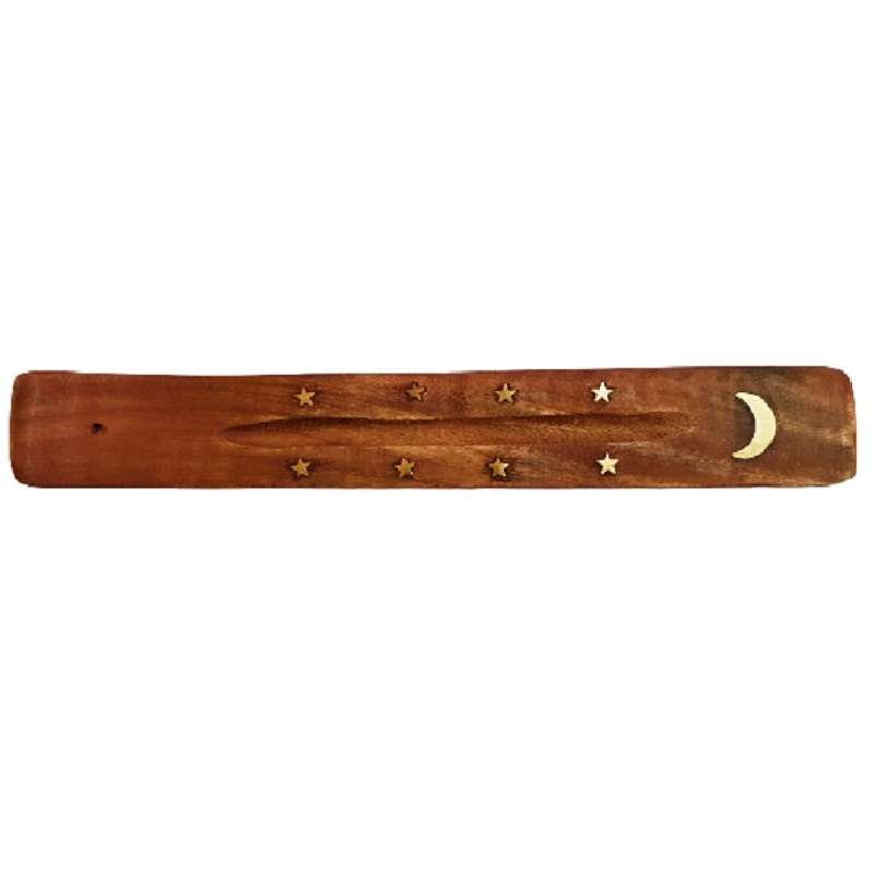 Este suporte de incenso em madeira tem 25,5cm de comprimento e apresenta um design único com uma lua dourada e estrelas douradas na base. A madeira de alta qualidade garante durabilidade e resistência adequadas para uso prolongado, enquanto o suporte oferece uma base estável para as suas varas de incenso favoritas. Além de ser prático, o design é elegante e decorativo, adicionando um toque de estilo a qualquer divisão da sua casa.